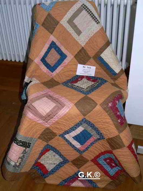 Die Ausstellung war wie immer perfekt organisiert. So hingen z.B. immer alle schwarzgrundigen Quilts zusammen. Schwarz bringt ja die Farbe mehr als alles andere zum Leuchten. So hatte man auch einen Eindruck welcher von den "Schwarzen" einem am Besten gefiel.
